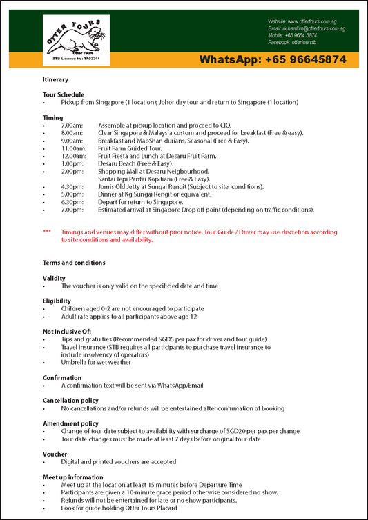 Desaru Day Tour: Fruit Farm, Desaru Beach, Kampung Sungai Rengit & Mega Mall (Day)